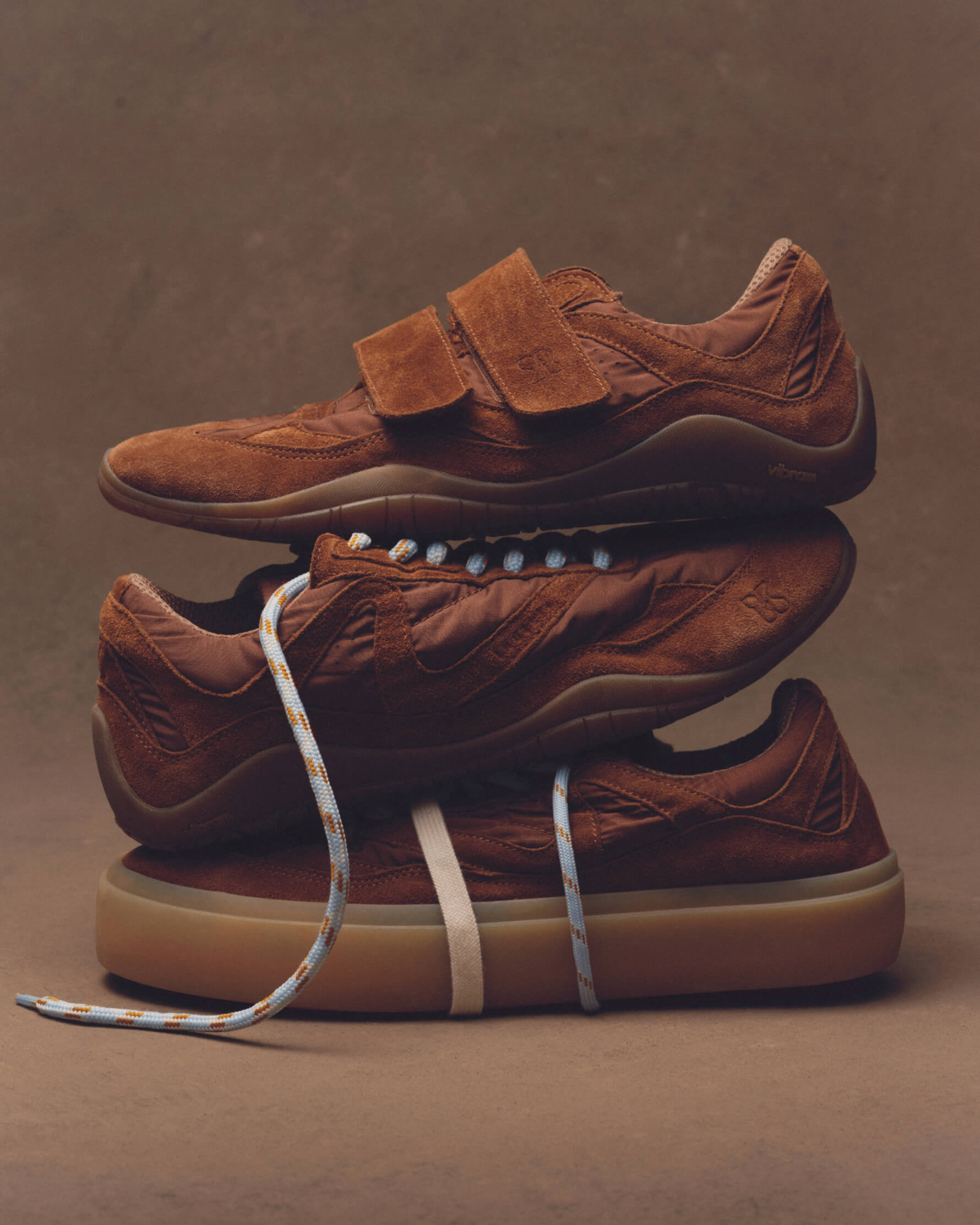 The SS26 collection highlights sneakers as its centerpiece. Carefully balanced material combinations and recurring design elements unify the range, while the color palette emphasizes natural shades like beige and brown. Crafted mainly from leather and suede, each style combines standout design with long-lasting wear.